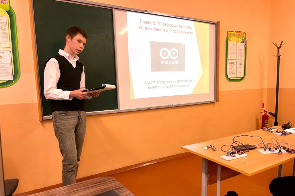 Александр Ефименко (8 класс) предложил проект мониторинга температурного режима школы на базе Arduino. Датчики, размещенные в разных точках здания, передают данные на сервер, позволяя анализировать температурные условия в классах и корректировать работу отопления. Проект не только технически сложен, но и имеет социальную значимость – комфортная температура улучшает качество обучения, а сэкономленная электроэнергия – экологию.