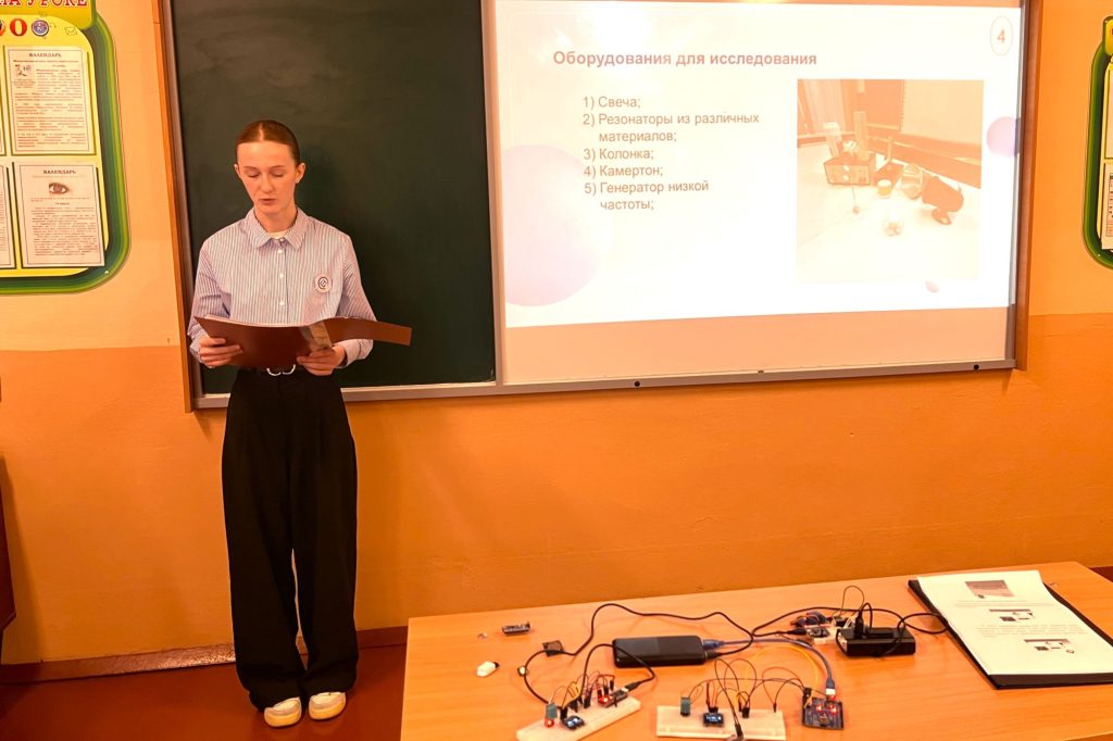 Девятиклассница Валерия Винокурова удивила жюри работой «Огонь против звука», в которой исследовала влияние звуковых волн на пламя. Используя звуки различной частоты, она наглядно продемонстрировала, как меняется форма огня под воздействием резонанса. Этот эксперимент открывает двери для дальнейших исследований в области акустики.