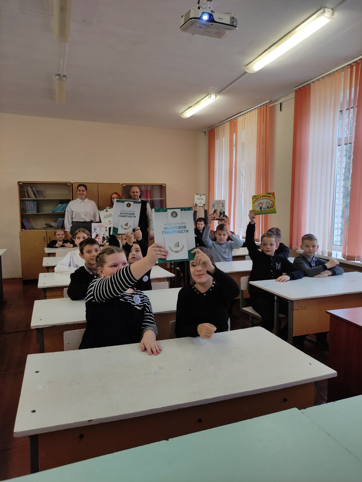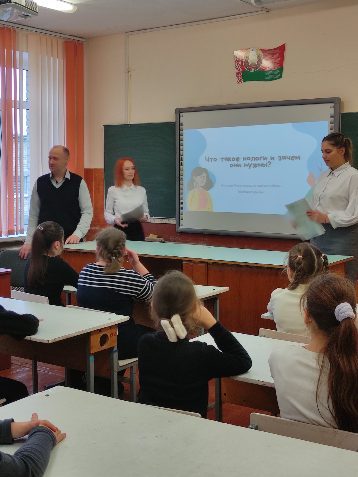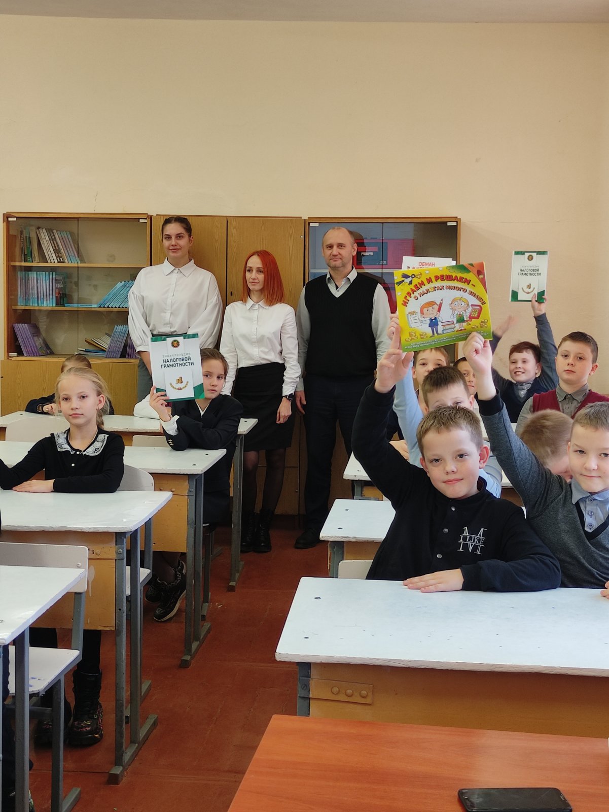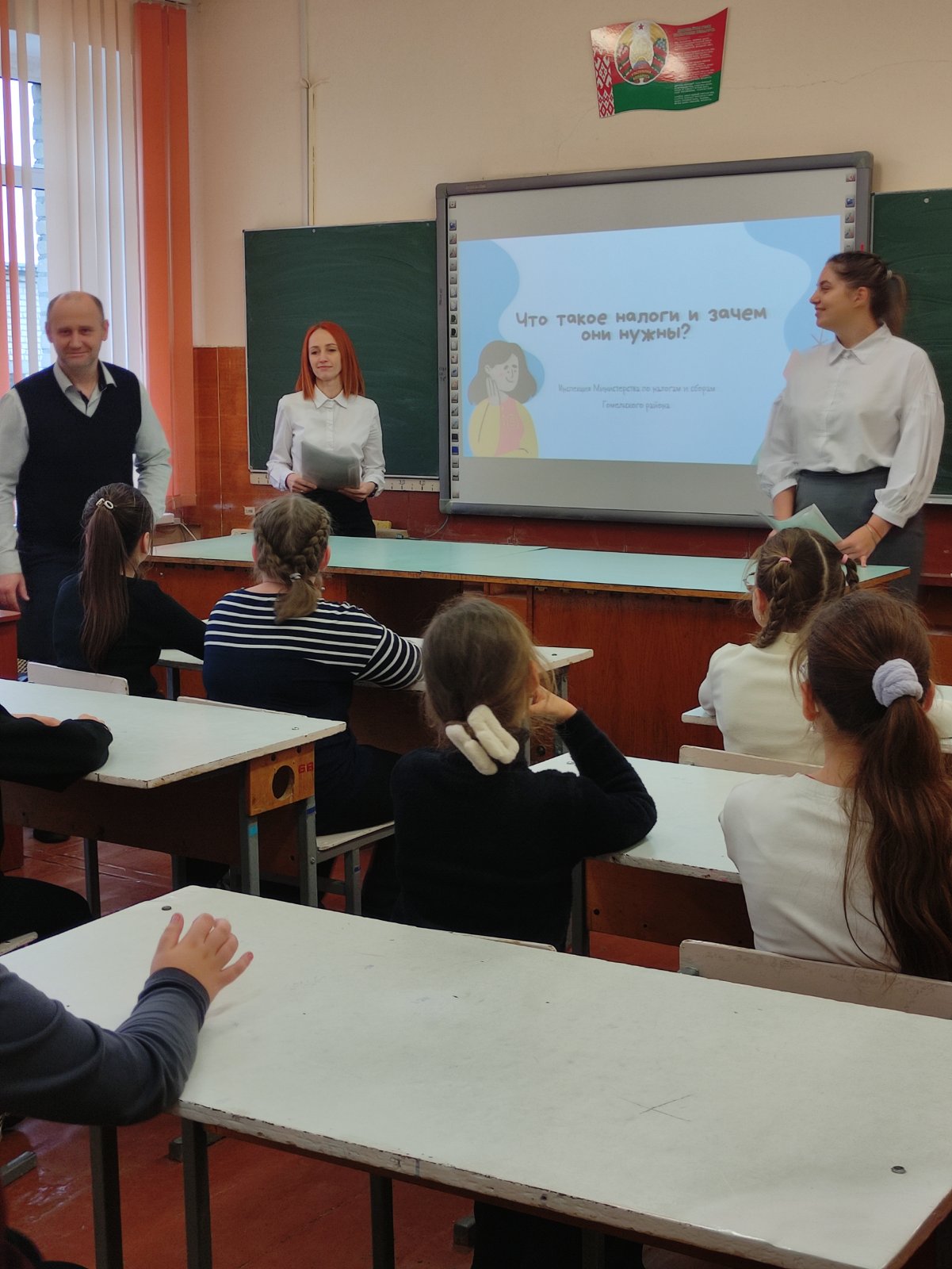 Сотрудниками инспекции МНС Республики Беларусь по Гомельскому району 28 ноября 2025 года был проведен урок налоговой грамотности на тему «Детям о налогах» с учениками 4 класса ГУО «Терешковичская средняя школа».