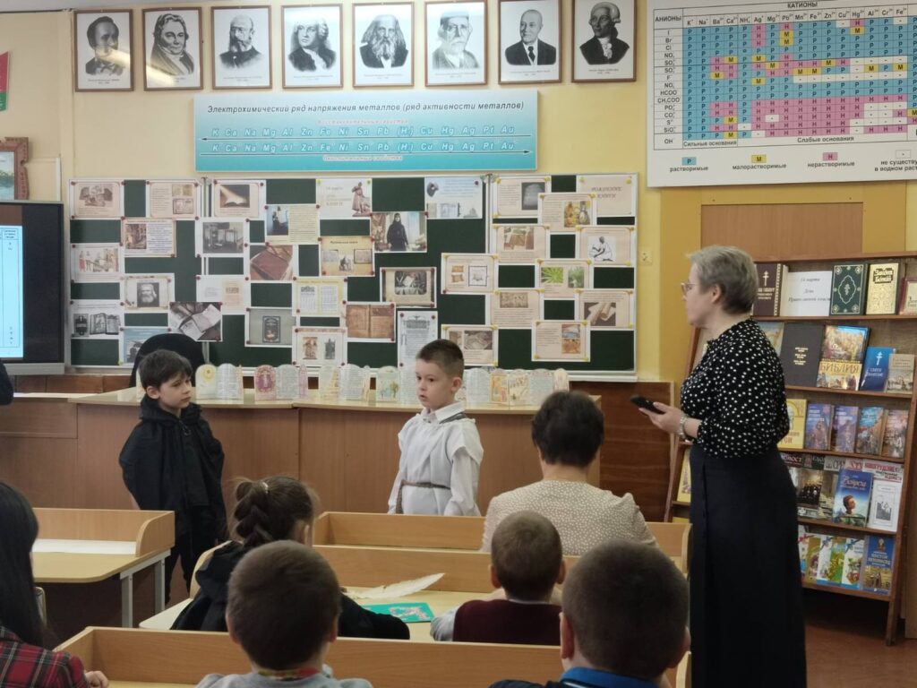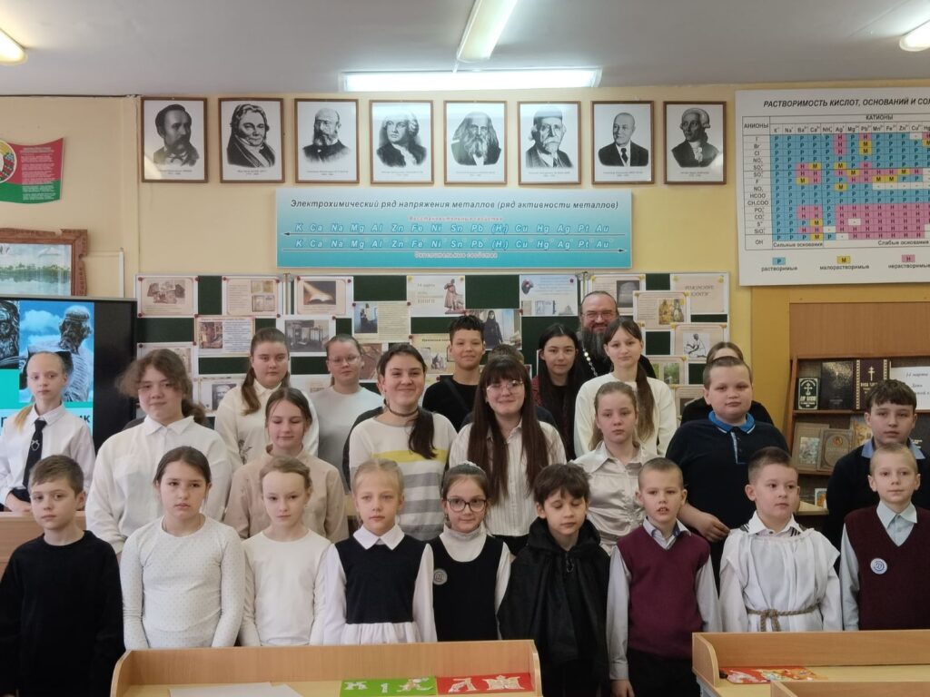 В преддверии Дня православной книги, который ежегодно отмечается 14 марта, в ГУО «Терешковичская средняя школа» состоялась встреча учащихся 2, 6 классов с настоятелем храма аг. Терешковичи отцом Вячеславом. Целью встречи стало приобщение подрастающего поколения к духовно — нравственным ценностям. Отец Вячеслав рассказал ребятам о значении книги в жизни человека, о том, что книга — это не просто источник знаний, но и хранительница мудрости и добра, подчеркнул, что православная книга учит человека добродетели, помогает найти путь в жизни и учит совести. В завершение встречи о. Вячеслав призвал детей чаще задумываться о прочитанном и выбирать для чтения книги, которые учат добру и помогают становиться лучше.