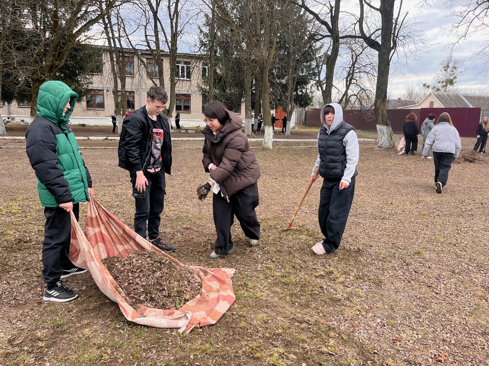 Основной задачей была уборка листвы, не успевшей упасть к осенним субботникам. Работа кипела: кто-то усердно подгребал листву граблями, кто-то собирал её в мешки, а самые сильные относили наполненные мешки в отведенное место. Благодаря общими усилиями и отличному настроению территория школы преобразилась: стала ещё красивее, чище и уютнее.