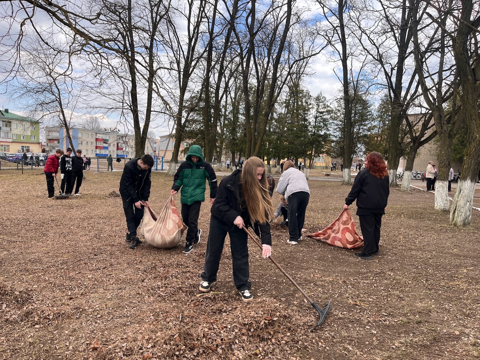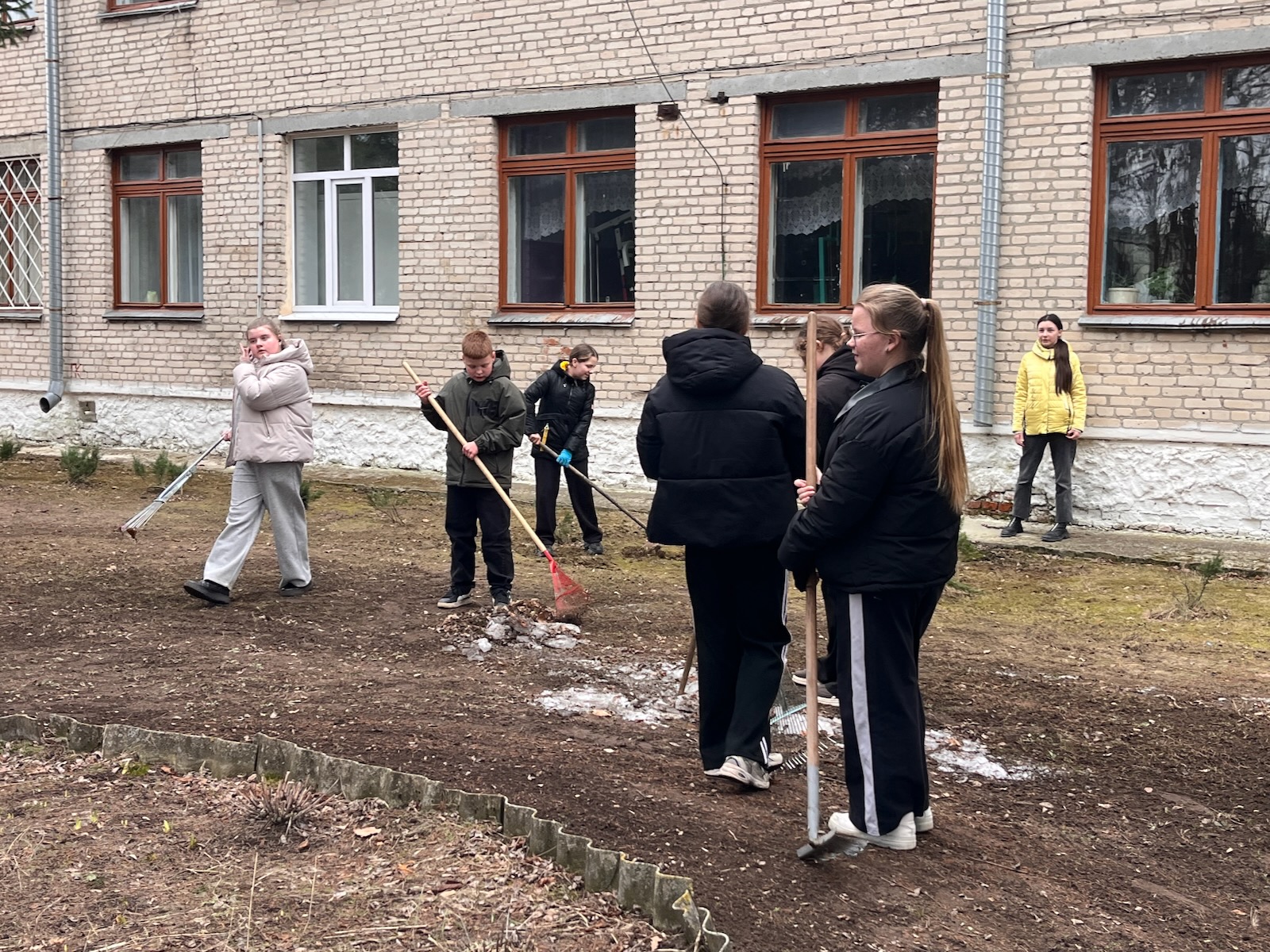 В прекрасный весенний день в нашей школе состоялся традиционный субботник. Учащиеся, педагоги и технический персонал вышли привести в порядок школьный двор и прилегающую к нему территорию посли зимы.